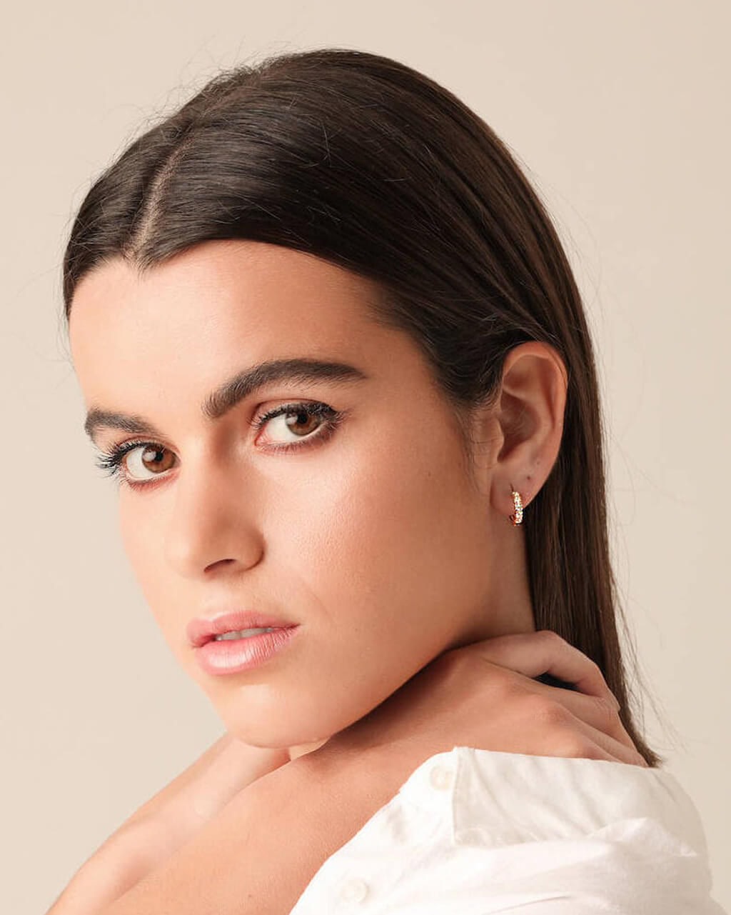 Add a touch of glamour to your ensemble with our small huggie hoops featuring dazzling CZ Stones 💎. These eye-catching ear hoops are a must-have addition to your jewelry collection 🤩