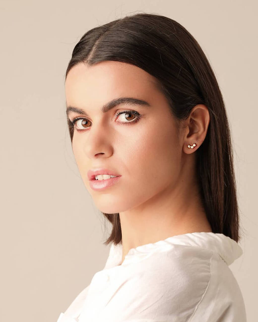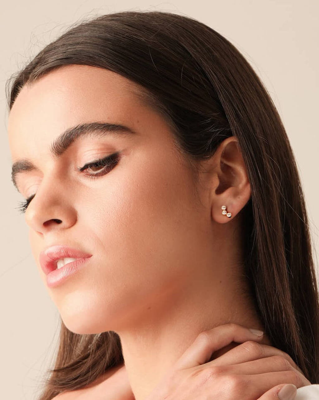 Elevate your look with these exquisite curved dot studs! Crafted from shining crystal and designed in a graceful curve of three beautiful dots, these earrings add a unique touch of glamour and sophistication. Experience the joy of wearing these dainty earrings!